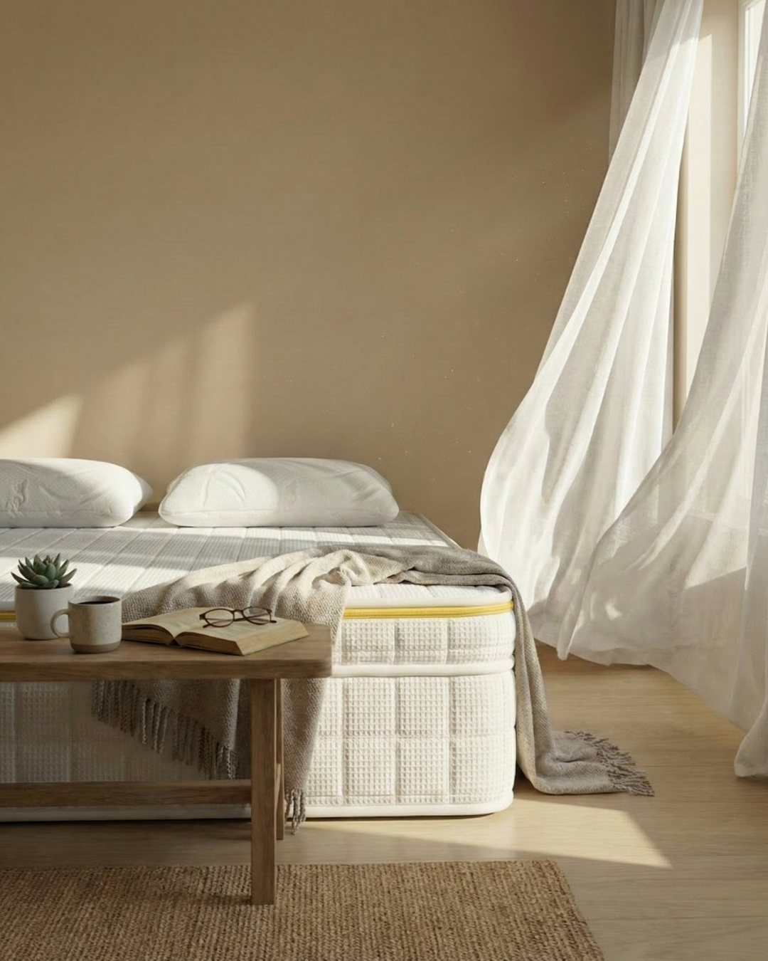 「不苦勞」—— 讓睡眠不再是翻來覆去的勞累,而是真正的修復與休息。我們堅持無膠水透明化製程、拒絕黑心材料,因為我們深知,安心,才是好眠的基石。